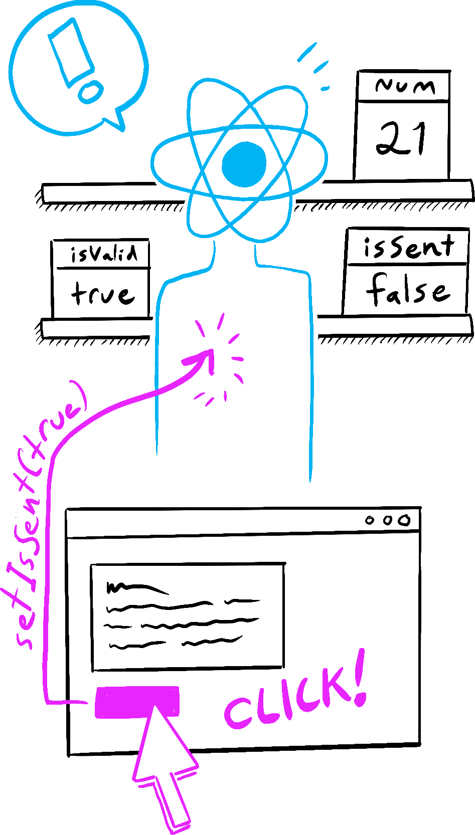 - React는 새로운 isSent값에 따라 컴포넌트를 다시 렌더링합니다.
