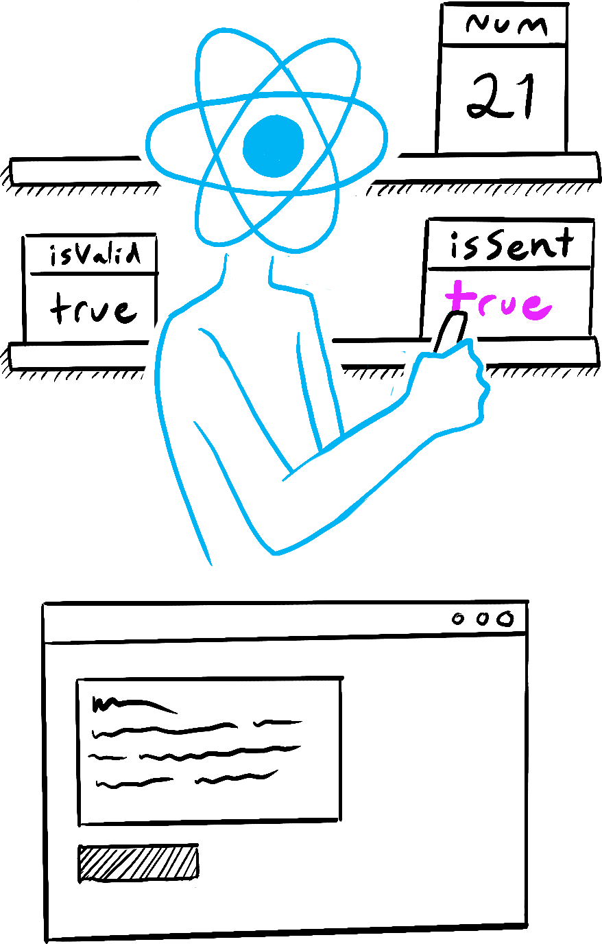 import { useState } from 'react'; export default function Form() { const [isSent, setIsSent] = useState(false); const [message, setMessage] = useState('Hi!'); if (isSent) { return <h1>Your message is on its way!</h1> } return ( <form onSubmit={(e) => { e.preventDefault(); setIsSent(true); sendMessage(message); }}> <textarea placeholder="Message" value={message} onChange={e => setMessage(e.target.value)} /> <button type="submit">Send</button> </form> ); } function sendMessage(message) { // ... }